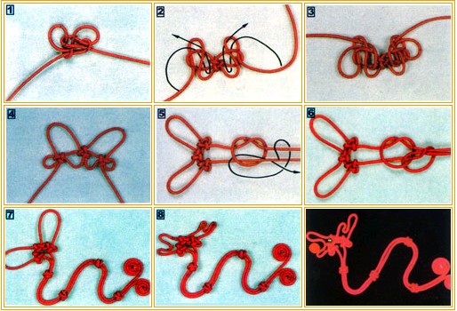 如意,状似灵芝,传说灵芝为长生不老仙药,乃吉祥瑞草。如意结是以四个酢浆草结组合而成,本结的应用很广,几乎各种结饰的组合,都可搭配上。
