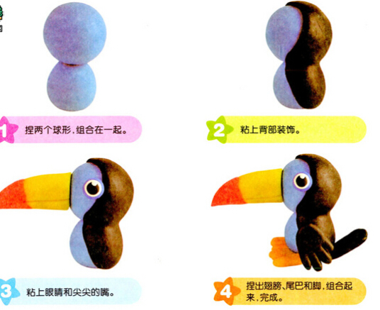 大嘴鸟和小鹦鹉(橡皮泥)
