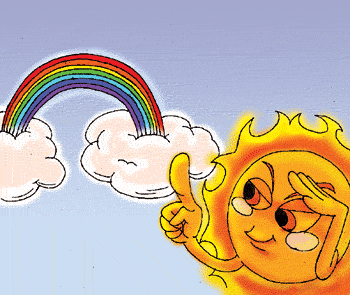 7、“快回头!”太阳公公说。啊!天空中出现了:红、橙、黄、绿、蓝、青、紫七种美丽的颜色。