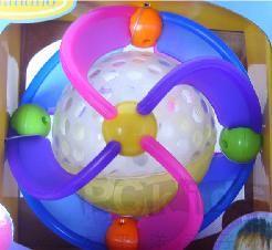 点评:这类小球是新推出的,它不仅可以发出声响,而且还可以发光哦。半个球上有彩色灯光通过透明罩内射出,在音乐响起时会有灯光闪烁,不同的音乐及声效灯光闪烁的节奏也会不同,相信它是最能吸引宝宝注意的学爬玩具了!
