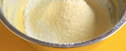 步骤3:分次加入全蛋液搅打均匀,筛入所有粉类,用橡皮刮刀拌合。