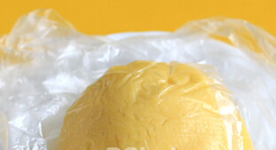 步骤4:再用手抓捏成团,用保鲜袋包裹好,放冰箱里冷藏1小时。