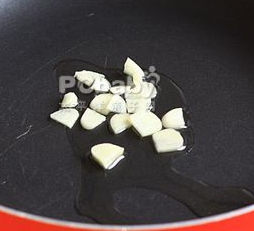 步骤1:将蒜瓣拍成碎粒,锅中倒少许油,油温后放入蒜粒爆香。