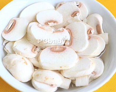 步骤2:大蒜和蘑菇切片。